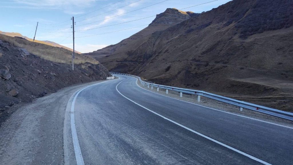 На объекте выполнены работы по уширению и укреплению земляного полотна дороги, устройству асфальтобетонного покрытия и подпорных стен. Также выполнены работы по обеспечению водоотвода, устроены бетонные лотки открытого типа на селеносных участках, нарезаны кюветы.