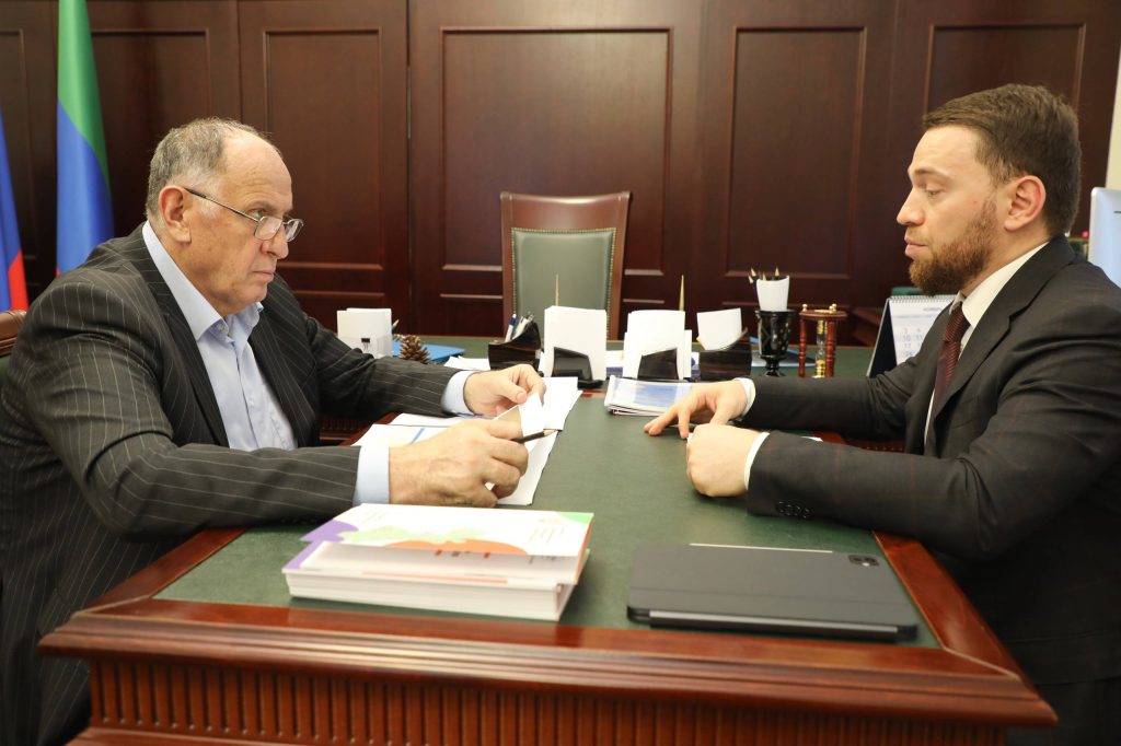 Во вторник, 11 ноября, Председатель Правительства Республики Дагестан Абдулмуслим Абдулмуслимов провел рабочую встречу с руководителем Агентства по предпринимательству и инвестициям РД Хаджимурадом Исрапиловым.